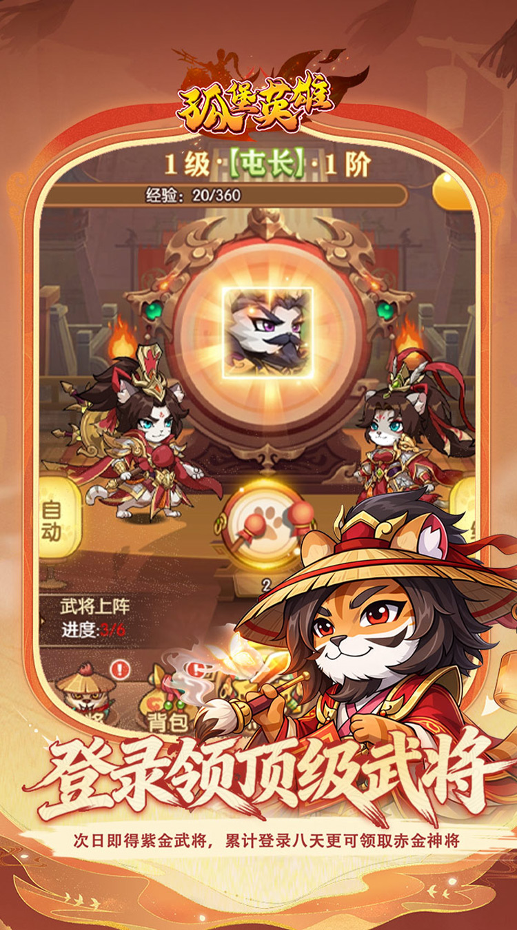 摒弃无脑数值碾压,在轻松挂机的基础上,深挖策略博弈深度,让每一场战斗都充满趣味与挑战。核心玩法聚焦阵容布阵,玩家需根据兽化名将、萌虎主将与神宠的属性、定位,灵活调整站位与搭配,兼顾输出、防御、辅助、控场等多重需求。兽化名将涵盖近战、远程、控制、辅助等多元定位,搭配萌虎主将的群体增益与神宠的专属技能,可解锁千变万化的阵容套路——偏好速战速决,可搭配暴击型兽化名将与输出神宠,借助萌虎主将的伤害加成,快速清场;偏爱稳扎稳打,可组建防御型阵容,搭配辅助兽娘与续航神宠,坚守防线稳步推进;喜欢出奇制胜,可搭配控场型兽化名将与debuff神宠,限制敌方战力后完成逆风翻盘。每一步布阵都关乎战局走向,既能享受挂机的轻松,又能体验策略博弈的成就感。